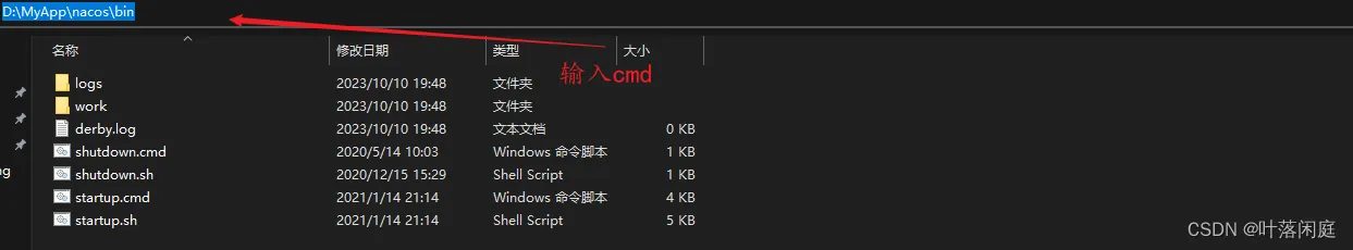 - 进入到nacos的bin目录下,在地址框输入cmd