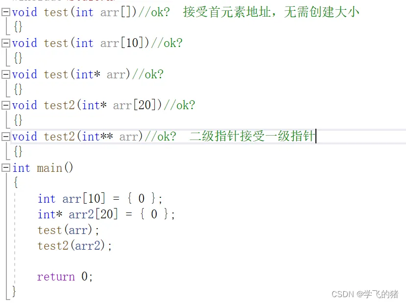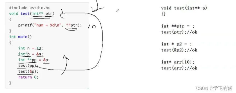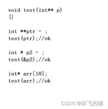 int compare_string_func(const void* e1, const void* e2) { int ret = strcmp(*(char**)e1, *(char**)e2);//e1接收的元素类型为char*(数组元素地址强制类型转换的) //由于需要传入字符串地址,强制类型转换为二级指针,此时e1相当于二级指针,字符串的地址相当于一级指针所指对象 //e1存放一级指针地址,解引用获得一级指针所含内容,即字符串地址 return ret; } void swap(char* buf1, char* buf2, int n)//buf1,buf2接收的为【数组元素地址(强制类型转换为char*)】的地址 { for (int i = 0; i < n - 1; i++) { char tmp = *buf1;//解引用获得数组元素地址进行交换,交换后,地址中所含内容也随之交换,即字符串的地址 *buf1 = *buf2; *buf2 = tmp; buf1++; buf2++; } } void my_qsort(void* base, int sz, int n, int(*cmp_func)(const void*, const void*))//base接收元素地址 { for (int i = 0; i < sz - 1; i++) { for (int j = 0; j < sz - i - 1; j++) { if (cmp_func((char*)base + j * n, (char*)base + (j + 1) * n) > 0)//将元素地址强制类型转换为char*,每加 //n个字节,跳过一个元素地址,找到下一个元素地址 { swap((char*)base + j * n, (char*)base + (j + 1) * n, n); } } } } void print(char* arr[], int sz) { for (int i = 0; i < sz; i++) { printf("%s\n", arr[i]); } } #include<stdio.h> #include<stdlib.h> int main() { char* arr[] = { "zhangsan","lisi","wangwu" };//数组中元素类型地址,数组本身仍需开辟地址,用来存放元素->字符串地址 // 求出数组中的元素个数,使用数组的内存长度 / 第一个元素的内存长度 int sz = sizeof(arr) / sizeof(arr[0]); my_qsort(arr, sz, sizeof(arr[0]), compare_string_func);//arr为数组首元素地址,元素类型是地址-char* print(arr, sz); return 0; }