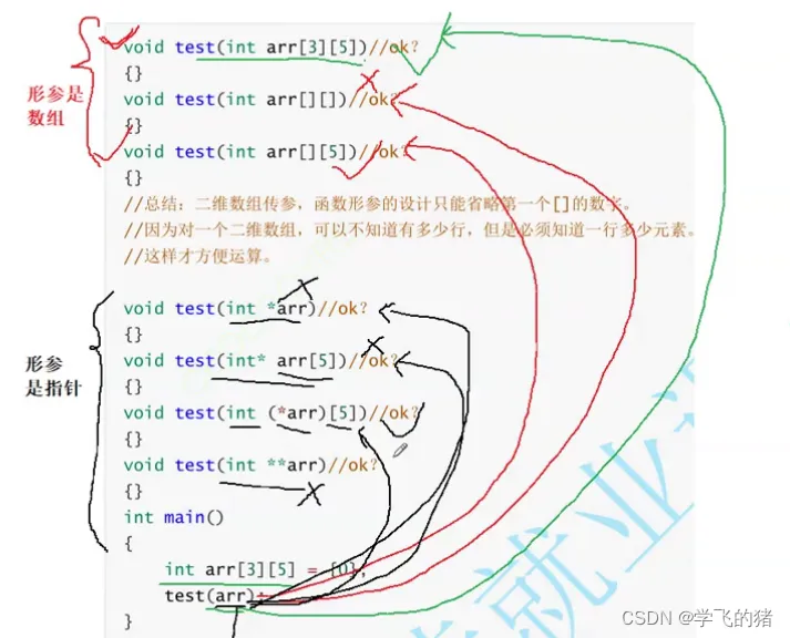 // p先和*结合,说明p是一个变量,然后指针指向的是一个大小卫视的整型的数组。所以p是一个指针,指向一个数组,叫数组指针。