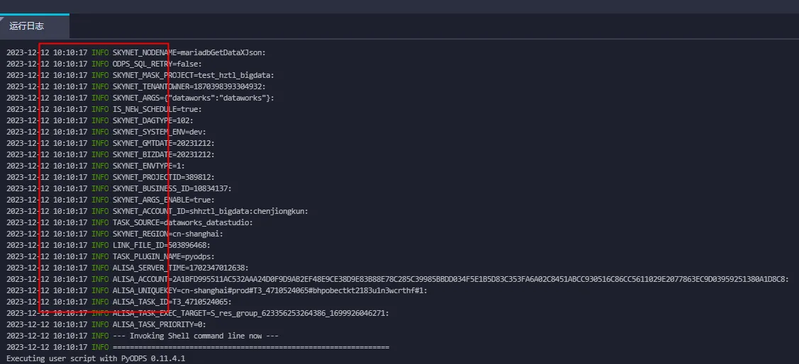 DataWorks写的py脚本, 这些info日志怎么关掉? 只显示我打印的内容?