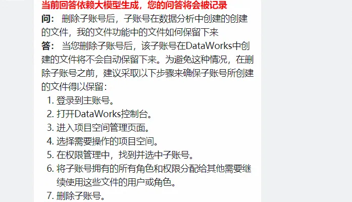 目前会收回一些dataworks账号,但是数据分析这看不到这些账号的文件。想确认下删除子账号后,子账号在数据分析中创建的创建的文件,我的文件功能中的文件如何保留下来?感觉这个好像不可行