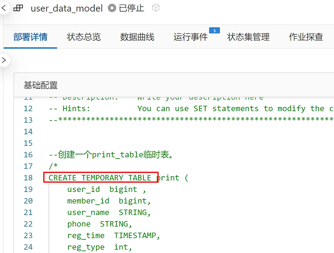 您好,在这里创建的是临时表,是物理表的映射表,所以要带上 TEMPORARY 关键字。非阿里flink的flinksql创建表是不需要带的,阿里flinksql要带的。