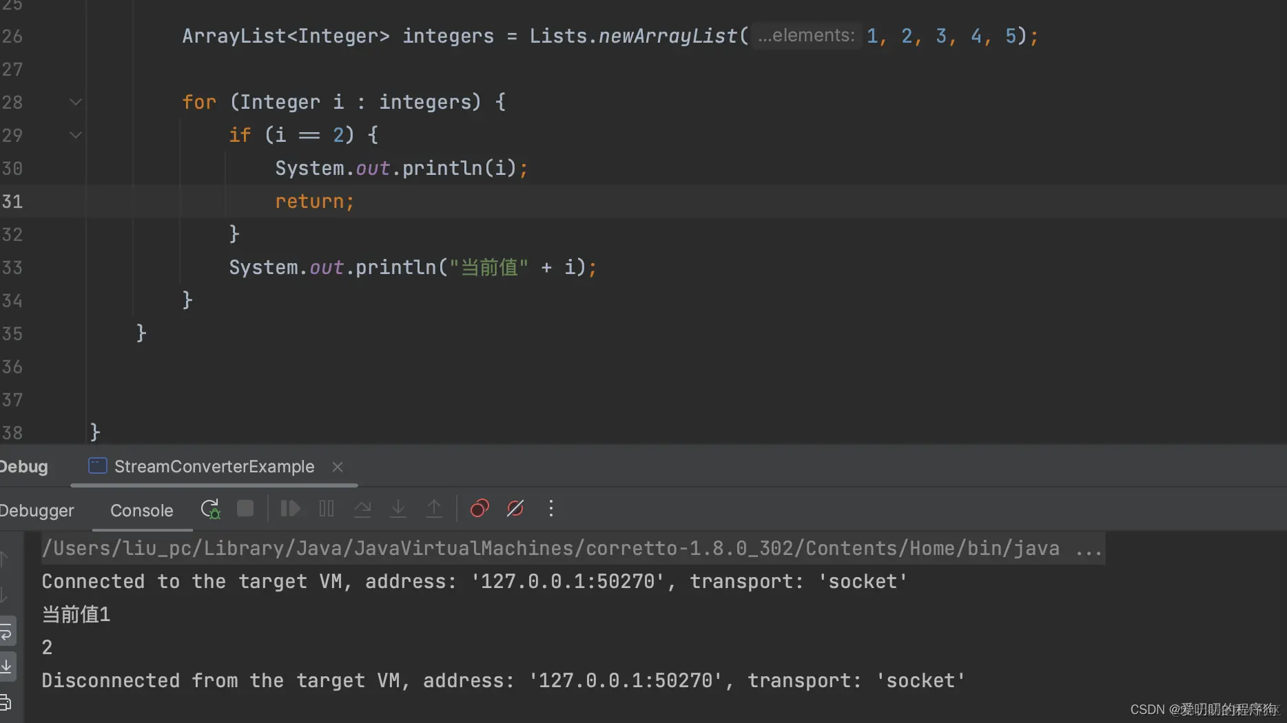 System.out.println("当前值" + i);