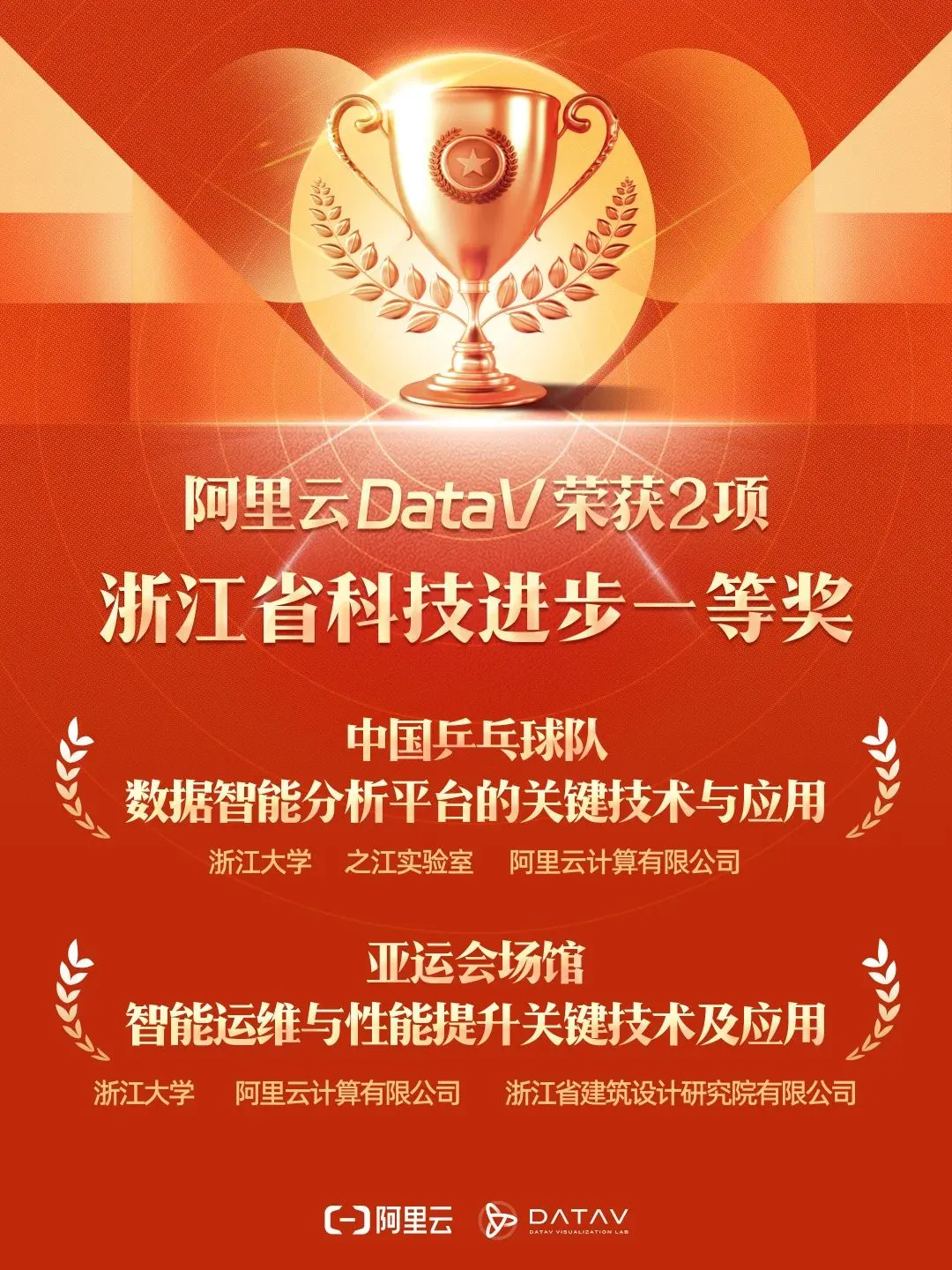 DataV 作为阿里云数据可视化产品团队,深耕“体育孪生可视化”领域多年,产品先后支持了东京奥运会、韩国冬奥会、北京冬奥会、法国奥运会等重大体育赛事,以先进可靠的数据可视化技术,促进体育数字化和智能化水平提升。此次作为亚运会智慧场馆项目和国家乒乓球队项目的体育孪生可视化技术参与团队,获得2项浙江省科技进步一等奖。