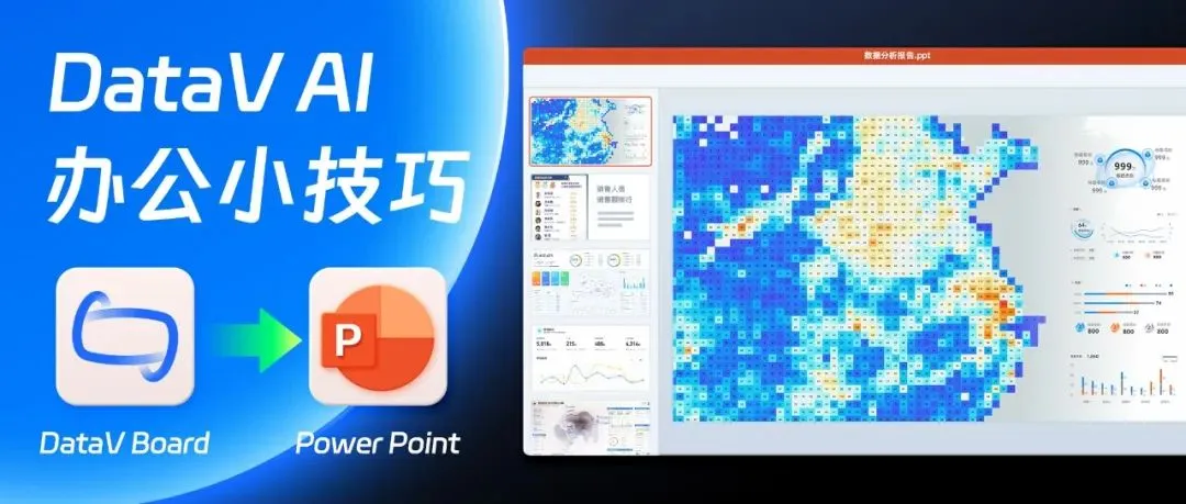至此,我们就完成了将 EXCEL 表格中的业务数据转化为 PPT 中的数据地图,整个过程不需要写任何代码,也不用设计师调整样式。通过 DataV 结合通义千问大模型技术,降低了数据地图的制作使用门槛。