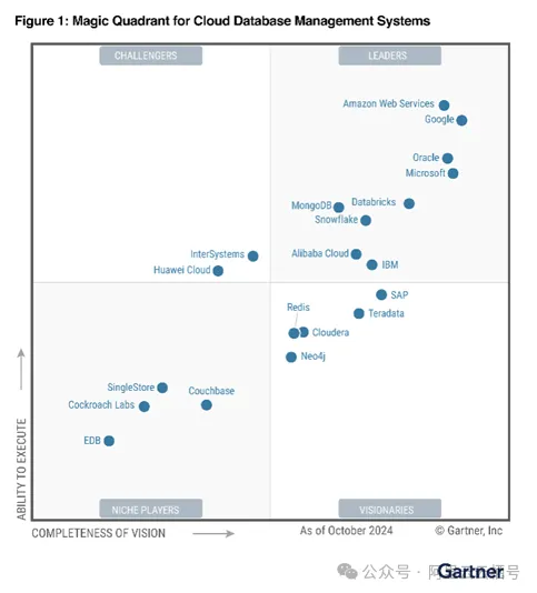 来源:Gartner, Magic Quadrant for Cloud Database Management Systems, 18 December 2024