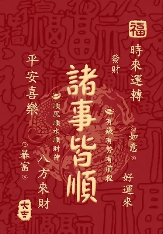平安喜樂 八方來財 順風順水順財神 暴富 大吉 諸事皆順 福 時來運轉 發財 如意 有錢有勢有前程 好運來