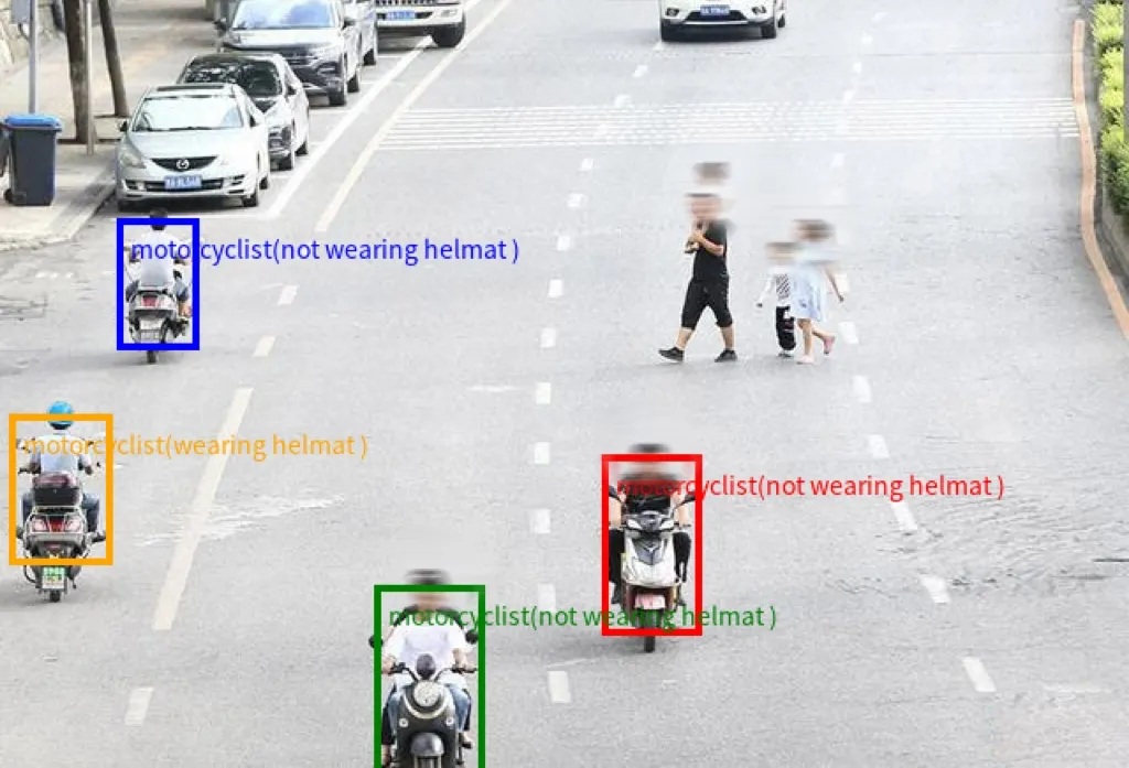 Prompt:Detect all motorcyclists in the image and return their locations in the form of coordinates. The format of output should be like {“bbox_2d”: [x1, y1, x2, y2], “label”: “motorcyclist”, “sub_label”: “wearing helmat” # or “not wearing helmat”}.