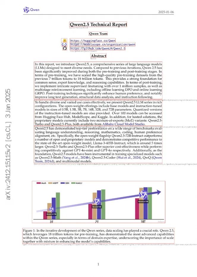 在 Qwen2.5-VL 中,我们在设计了一种更全面的文档解析格式,称为 QwenVL HTML 格式,它既可以将文档中的文本精准地识别出来,也能够提取文档元素(如图片、表格等)的位置信息,从而准确地将文档中的版面布局进行精准还原。基于精心构建的海量数据,QwenVL HTML 可以对广泛的场景进行鲁棒的文档解析,比如杂志、论文、网页、甚至手机截屏等等。