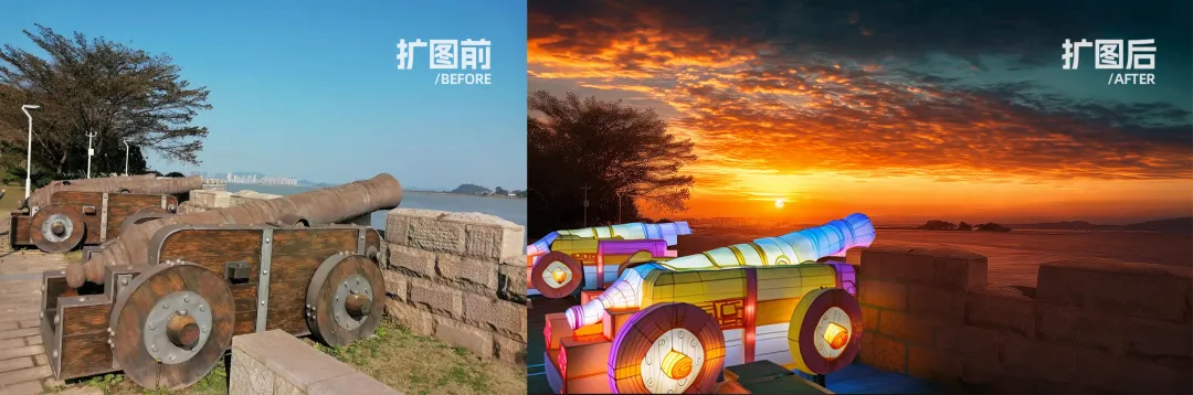只需要上传照片,AI便能自动将图片像四周完成扩充
