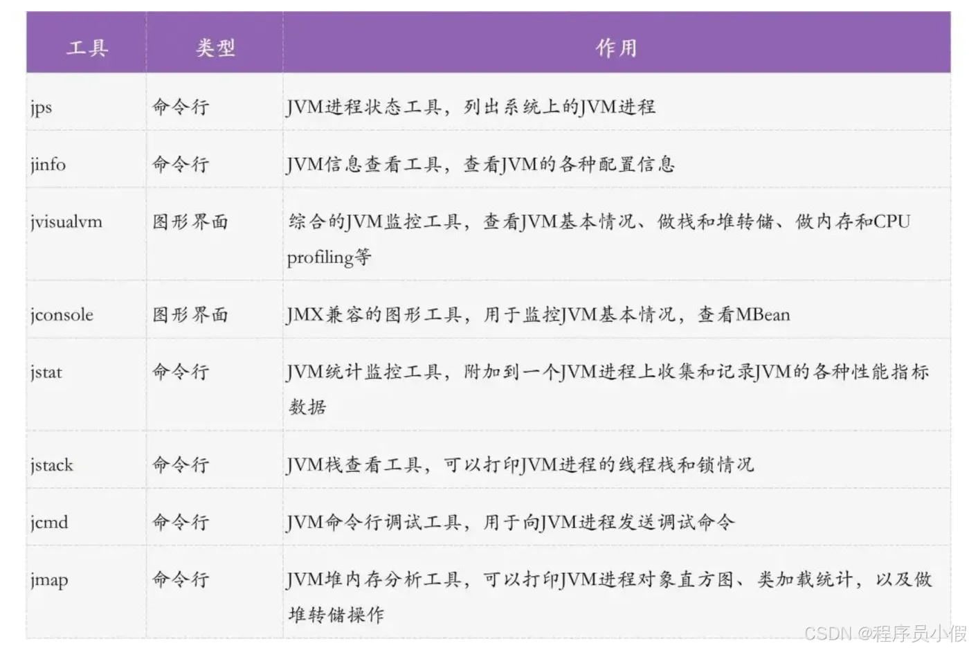 除了 jps、jinfo、jcmd、jstack、jstat、jconsole、jvisualvm 外,JDK 中还有一些工具,可以通过官方文档查看完整介绍。