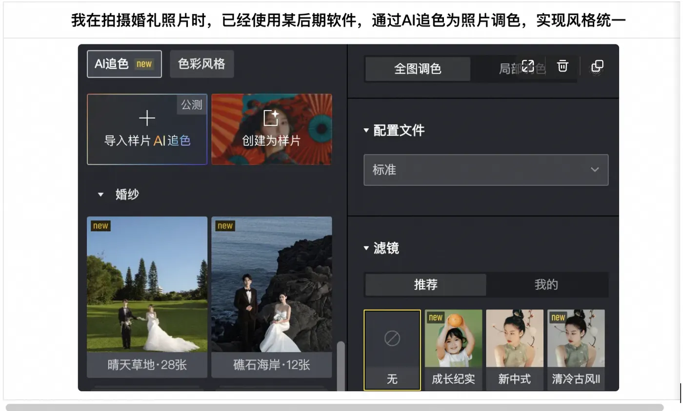 但AI也不是万能的,纪实类的摄影在很长一段时间内还是安全的,比如新闻摄影、活动拍摄等等,这些都需要摄影师现场拍摄。婚礼摄影师会微笑着告诉你,再聪明的AI也无法模拟结婚当天的现场,也读不懂父亲转身抹泪时微微抖动的嘴角。