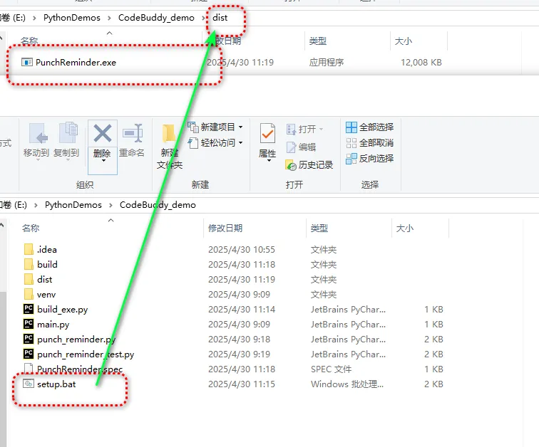 担心她看见 .py 文件一脸懵?你只需要双击运行 setup.bat,它会自动打包生成一个.exe文件。