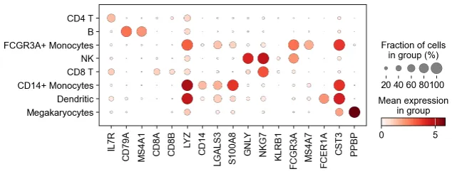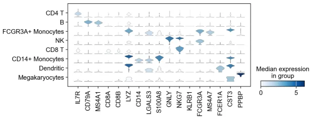 现在细胞类型已经标记好了,来看看标记基因的可视化效果: