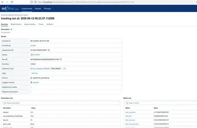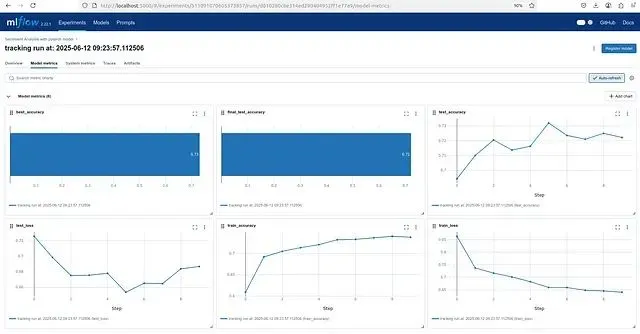 本文通过使用 Kaggle 数据集训练情感分析模型的实例,详细演示了如何将 PyTorch 与 MLFlow 进行深度集成,实现完整的实验跟踪、模型记录和结果可复现性管理。文章将系统性地介绍训练代码的核心组件,展示指标和工件的记录方法,并提供 MLFlow UI 的详细界面截图。