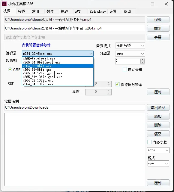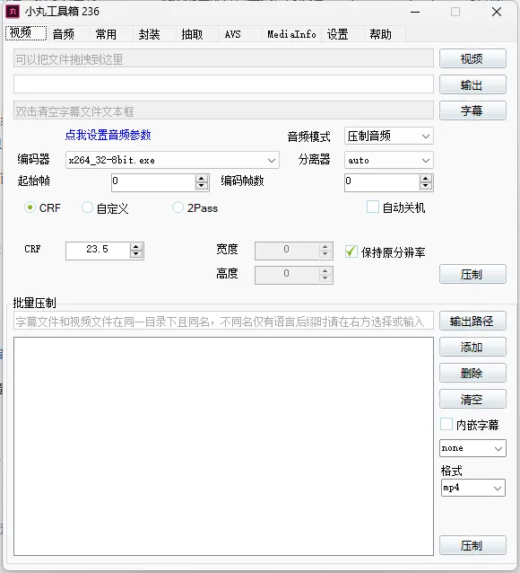 小丸工具箱一款可以压制H264+AAC视频的图形界面工具,内核是x264、neroaac、mp4box等软件。预制了@zj262144 研究出来的高清高压参数。