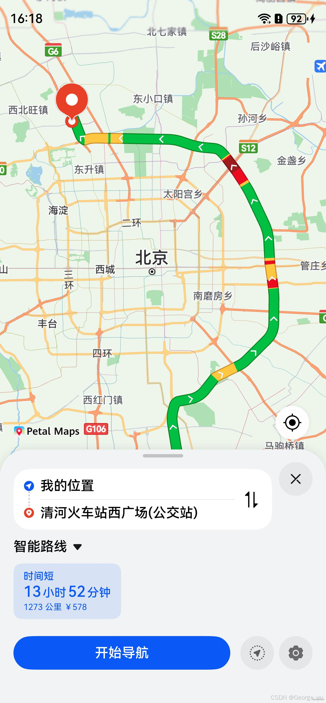 import { common, Want } from '@kit.AbilityKit'; @Entry @Component struct Index { aboutToAppear(): void { } StartNavi = ()=>{ let petalMapWant: Want = { bundleName: 'com.huawei.hmos.maps.app', uri: 'maps://routes', // 路径规划 // uri: 'maps://navigation', // 导航 parameters: { // 接入方业务名或包名,Link请求来源。 linkSource: 'com.example.navitest', destinationLatitude: 40.0382556, destinationLongitude: 116.3144536, // 终点Poi ID,如果有,优先使用(Map Kit返回的Poi信息含Poi ID)。 destinationPoiId: '906277887815706098', destinationName: '北京清河高铁站', vehicleType: 0 // 交通出行工具。0-驾车, 1-步行, 2-骑行。默认驾车 } } let context = getContext(this) as common.UIAbilityContext; context.startAbility(petalMapWant); } build() { RelativeContainer() { Text("唤起导航") .id('HelloWorld') .fontSize(50) .fontWeight(FontWeight.Bold) .alignRules({ center: { anchor: '__container__', align: VerticalAlign.Center }, middle: { anchor: '__container__', align: HorizontalAlign.Center } }) .onClick(this.StartNavi) } .height('100%') .width('100%') } }