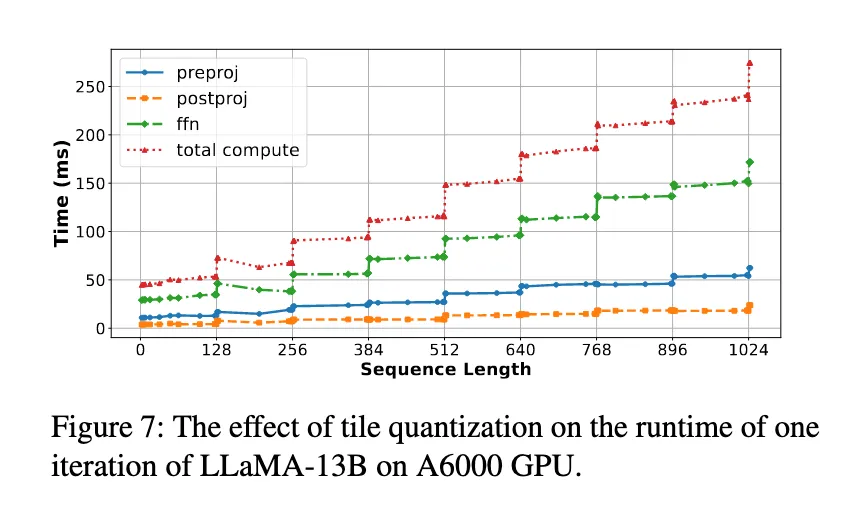 为避免这种问题,推荐的做法是:选择合适的 chunk size,并使其与搭载(piggyback) 的 decode token 数之和是 tile size 的整数倍,从而保持矩阵维度对齐,确保计算效率最优。