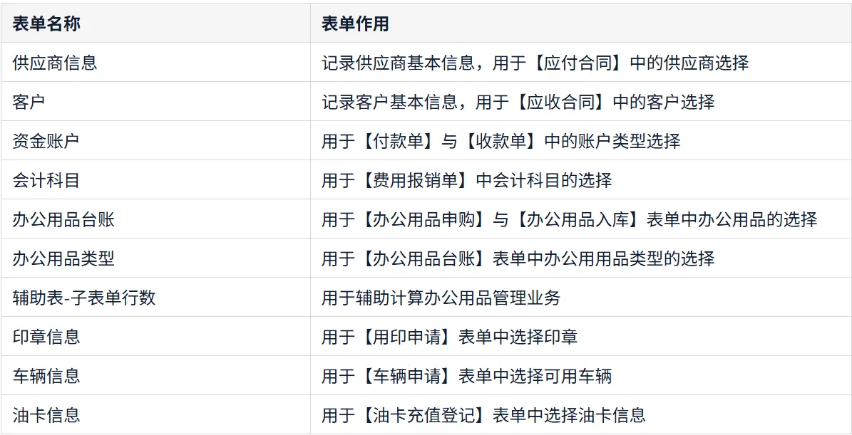 很多人在搭建流程时会发现,“选不出供应商”“选不了办公用品”“车辆也找不到”,问题往往就卡在基础数据没录好。