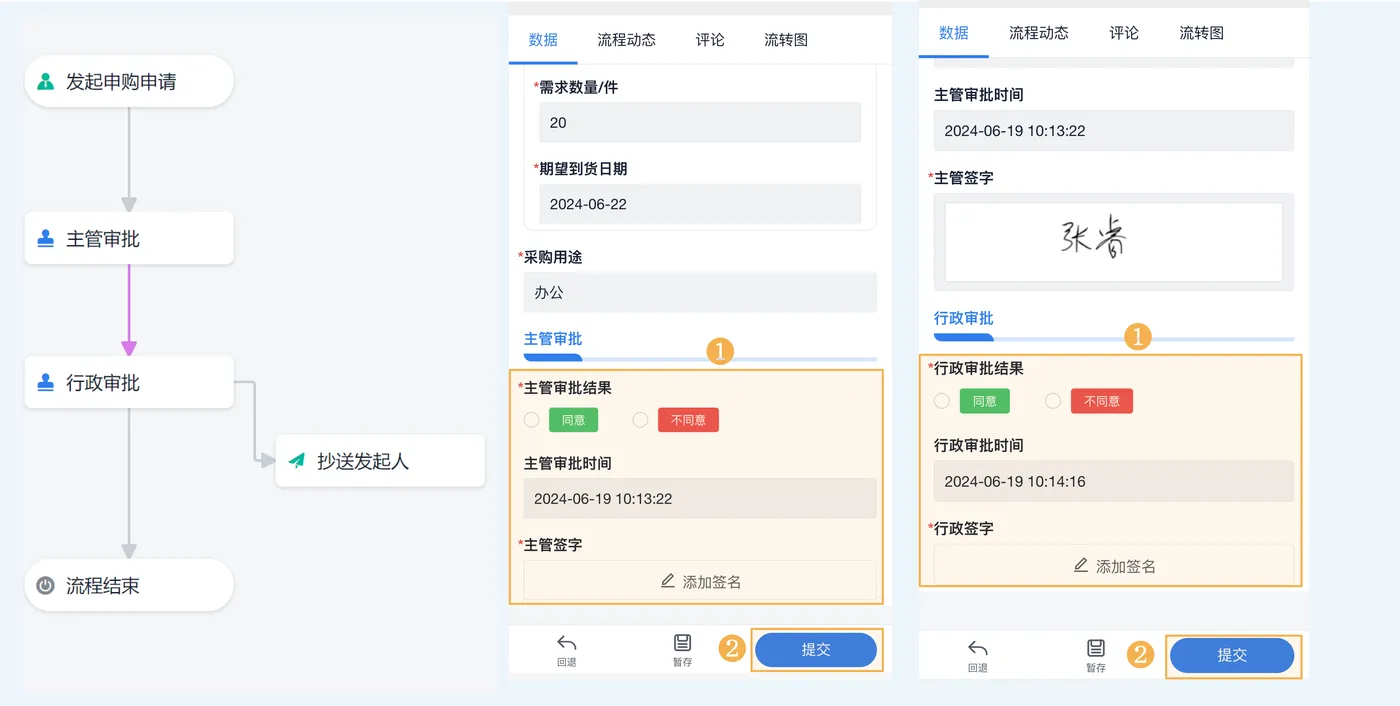 既然目标是无纸化,平台必须满足电子单据、电子签名、附件上传、流程留痕这些基本操作。 所有申请、审批、附件,在线就能搞定,不用再打印、跑腿、传纸质单据。