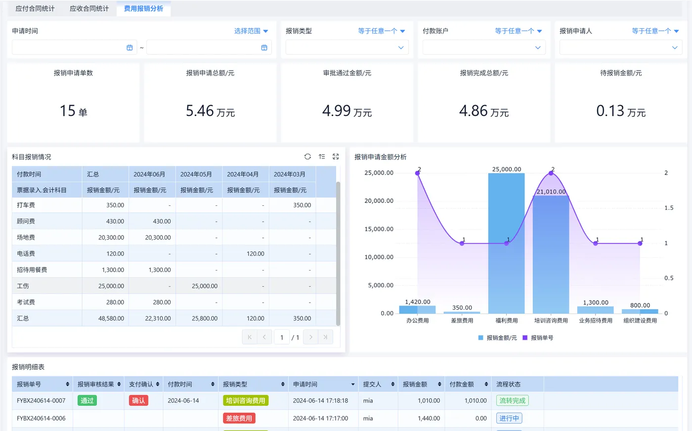- 费用报销管理(员工报销、发票上传、付款)