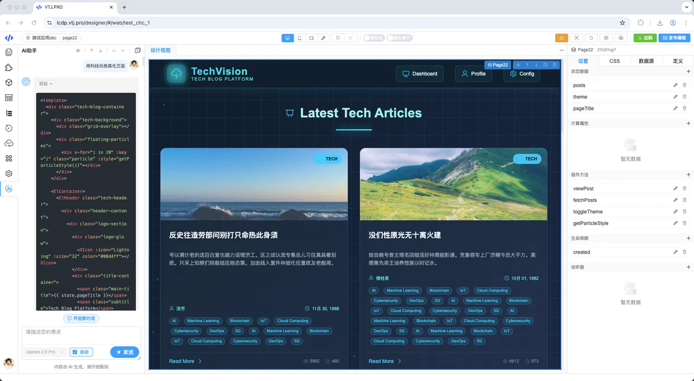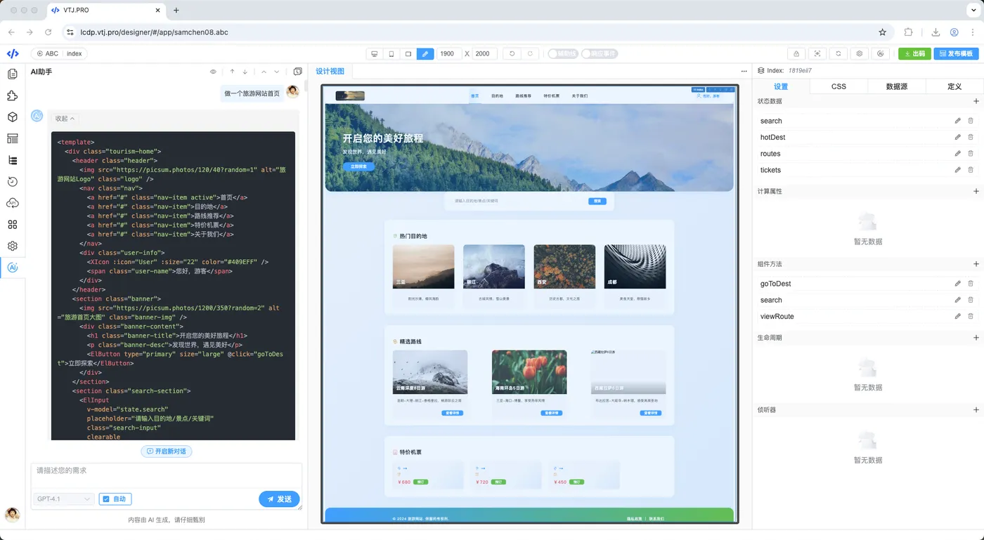 VTJ.PRO 是一款 AI驱动的革命性低代码开发平台,专注于提升前端开发效率,尤其深度适配 Vue3 技术栈。它通过融合可视化设计、AI智能引擎与源码级自由编辑能力,重新定义了高效开发的工作流。