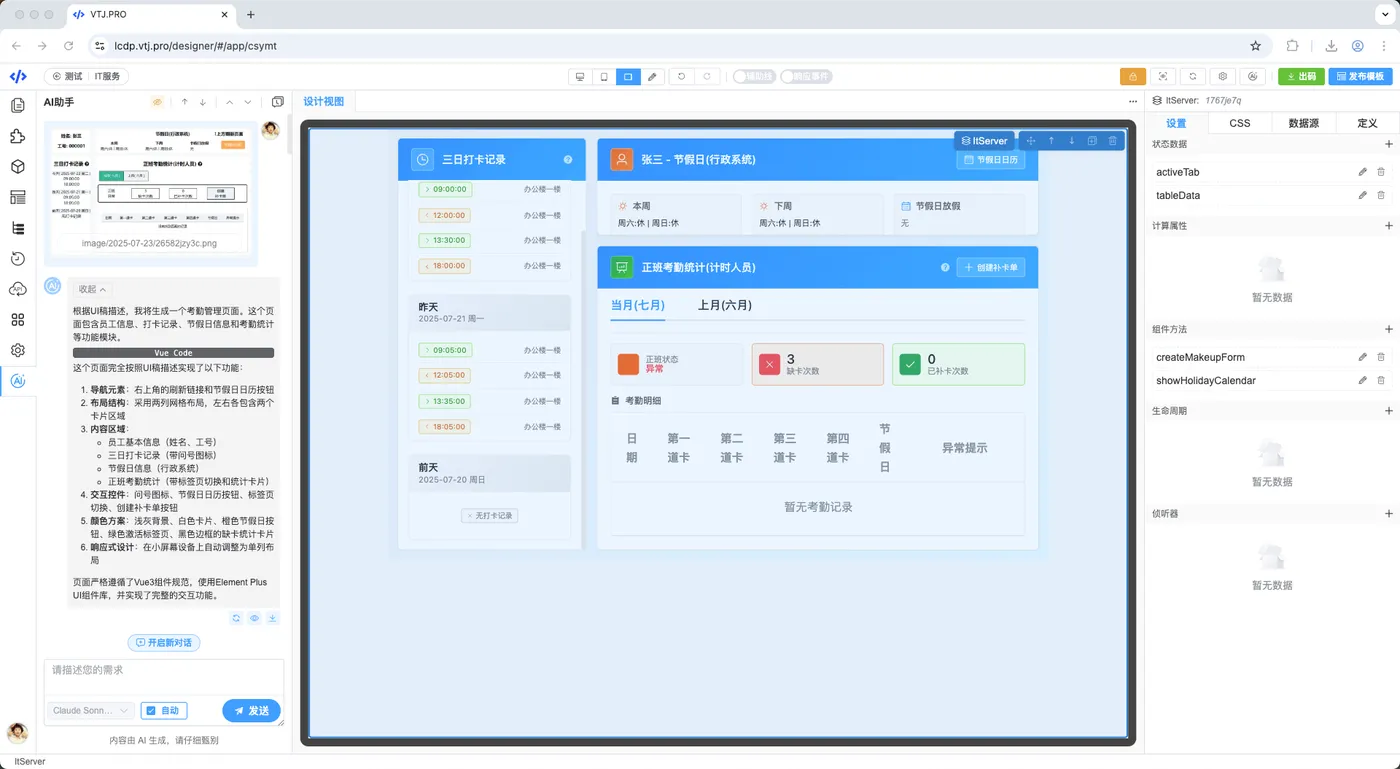 - 遗留项目改造:老旧 Vue 组件逆向解析为可视化模块,改造效率提升80%,避免重写成本。
