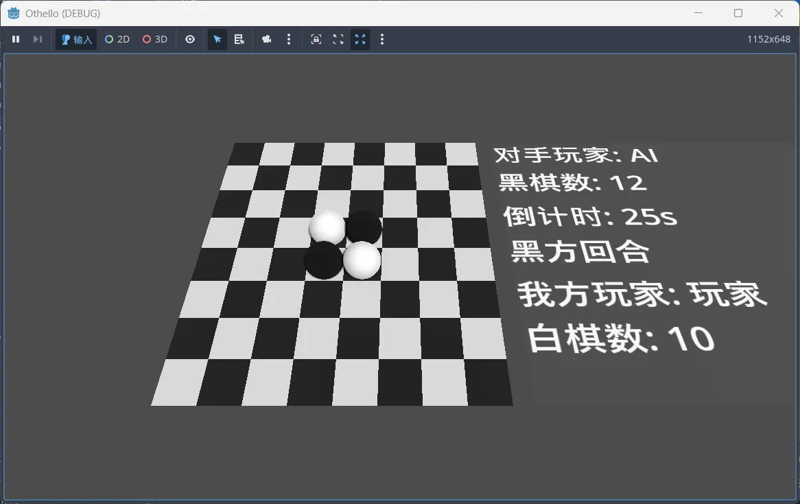 private Label opponentNameLabel; private Label opponentCountLabel; private Label playerNameLabel; private Label playerCountLabel; private Label countdownLabel; private Label currentPlayerLabel; private int countdownSeconds = 30; private Timer countdownTimer; /// <summary> /// 初始化玩家信息 /// </summary> private void InitPlayerInfo() { // 获取 UI 面板节点 var infoPanel = GetNode<MeshInstance3D>("PlayerInfoPanel"); var playerInfo = GetNode<SubViewport>("PlayerInfo"); opponentNameLabel = playerInfo.GetNode<Label>("Control/VBoxContainer/PanelOpponent/VBoxContainerOpponent/OpponentNameLabel"); opponentCountLabel = playerInfo.GetNode<Label>("Control/VBoxContainer/PanelOpponent/VBoxContainerOpponent/OpponentCountLabel"); playerNameLabel = playerInfo.GetNode<Label>("Control/VBoxContainer/PanelPlayer/VBoxContainerPlayer/PlayerNameLabel"); playerCountLabel = playerInfo.GetNode<Label>("Control/VBoxContainer/PanelPlayer/VBoxContainerPlayer/PlayerCountLabel"); countdownLabel = playerInfo.GetNode<Label>("Control/VBoxContainer/PanelDesc/VBoxContainerDesc/HBoxContainer/CountdownLabel"); currentPlayerLabel = playerInfo.GetNode<Label>("Control/VBoxContainer/PanelDesc/VBoxContainerDesc/CurrentPlayerLabel"); countdownTimer = new Timer(); AddChild(countdownTimer); countdownTimer.WaitTime = 1.0f; countdownTimer.OneShot = false; countdownTimer.Timeout += OnCountdownTimeout; countdownTimer.Start(); UpdatePlayerInfo(); UpdateCountdownLabel(); } private void UpdatePlayerInfo() { opponentNameLabel.Text = "对手玩家: AI"; opponentCountLabel.Text = "黑棋数: 12"; playerNameLabel.Text = "我方玩家: 玩家"; playerCountLabel.Text = "白棋数: 10"; currentPlayerLabel.Text = currentPlayer == Piece.Black ? "黑方回合" : "白方回合"; } private void UpdateCountdownLabel() { countdownLabel.Text = $"倒计时: {countdownSeconds}s"; } private void OnCountdownTimeout() { countdownSeconds--; if (countdownSeconds <= 0) { //countdownTimer.Stop(); countdownLabel.Text = "时间到!"; // 触发超时逻辑,比如换对方走 currentPlayer = currentPlayer == Piece.Black ? Piece.White : Piece.Black; countdownSeconds = 30; UpdatePlayerInfo(); } else { UpdateCountdownLabel(); } }