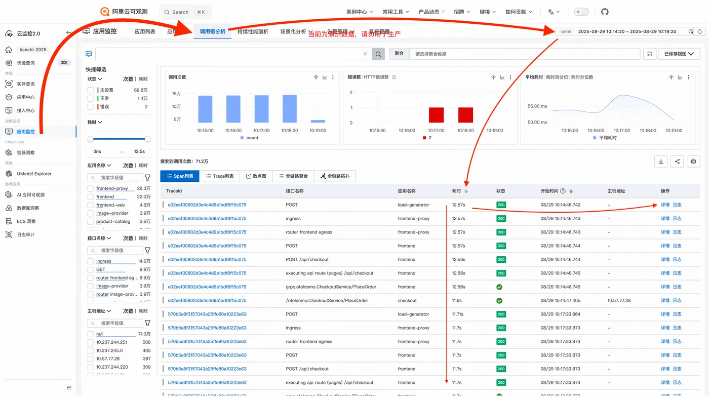 - 访问下面的链接进入云监控2.0调用链分析页面: