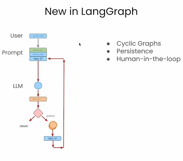 LangGraph的创新在于用有向图模型重构Agent工作流,将LLM调用、工具执行等模块抽象为节点,通过条件边实现动态跳转。其核心优势包括: