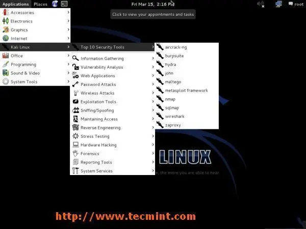 Kali Linux是Debian的一款衍生版。Kali旨在用于渗透测试。它大概在三个月前才发行。Kali的前身是Backtrack。用于Debian的所有Binary软件包都可以安装到Kali Linux上,而Kali的魅力或威力就来自于此。此外,支持Debian的用户论坛为Kali加分不少。Kali随带许多的渗透测试工具,无论是Wifi、数据库还是其他任何工具,都设计成立马可以使用。Kali使用APT来管理软件包。