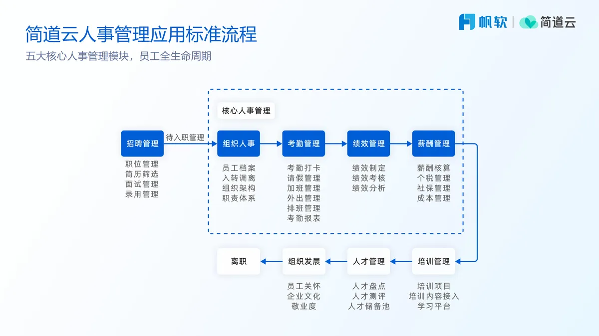 人事管理系统(HRMS)本质上是覆盖员工全生命周期的数字化平台,包含:
