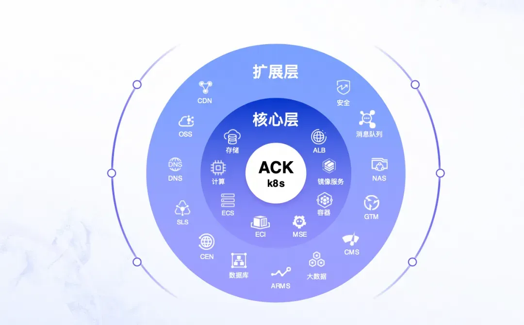 - 内核层:以 ACK 容器服务为底层,通过标准化容器调度功能定义业务模型与应用架构;