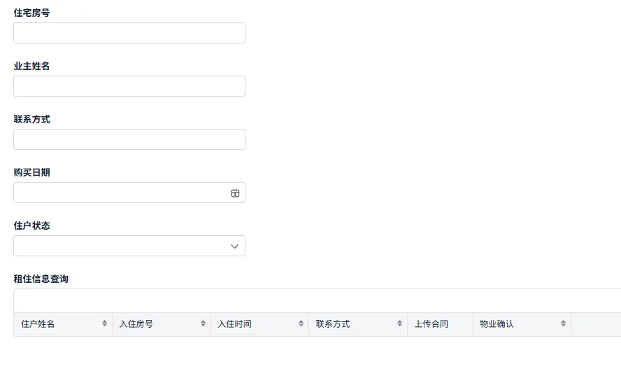 - 功能:添加/编辑住户信息(姓名、房号、联系方式)、查询、导出。