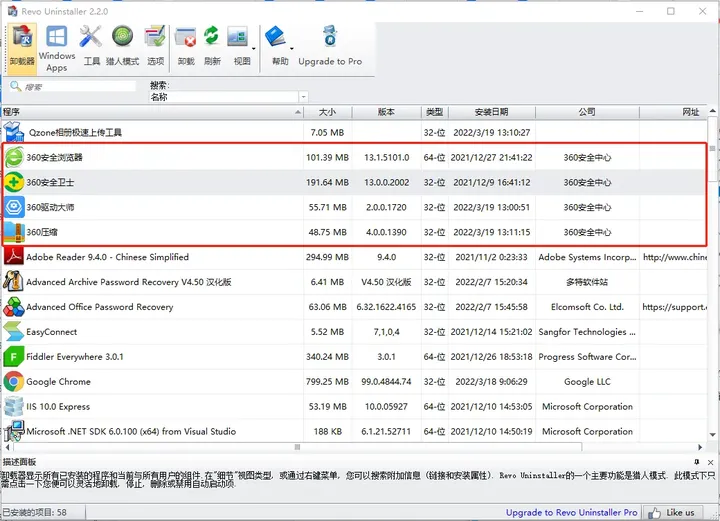 打开软件,默认是卸载器页面。在【卸载器】页面可以查看已经安装的软件的大小、版本、类型、安装日期、开发软件的公司等等信息。