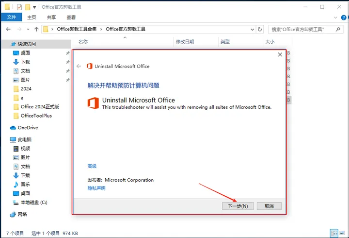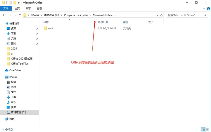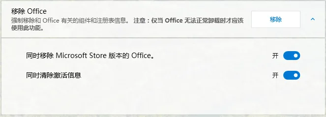 提前说明一下:这种方式肯定是不可能卸载Office干净的,毕竟Office的注册表、激活信息也是需要清除的。
