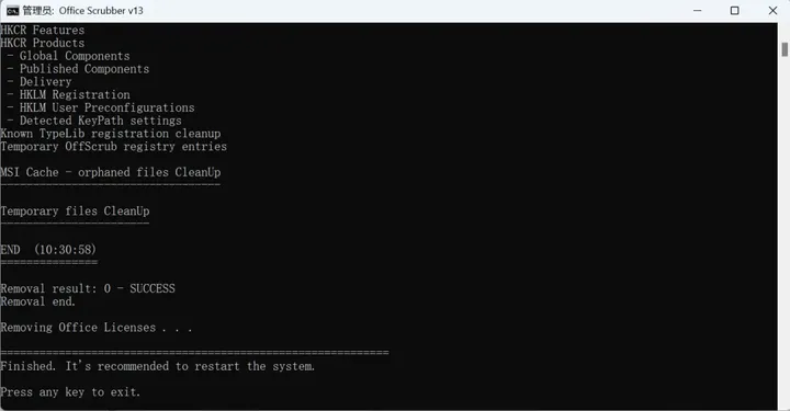 根据自己需要卸载的哪个版本进行选项, 当出现Press any key to exit提示信息,那说明已经完全卸载成功了。