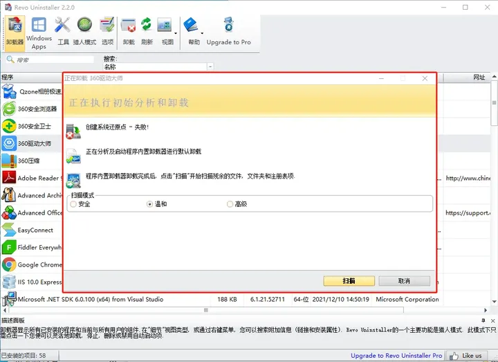 右键点击卸载的时候,会扫描注册表和一些残留文件。