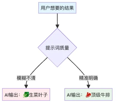 这就是很多人和AI初次"约会"时的真实写照。AI就像那个专业的服务员,拥有满腹才华,但如果你不知道怎么"点菜"(写提示词),最后得到的可能就是"生菜叶子"而不是"顶级牛排"。