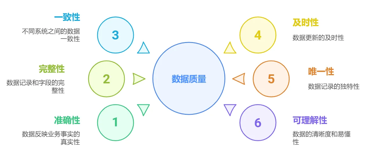 数据质量通常从以下六个维度进行评估: