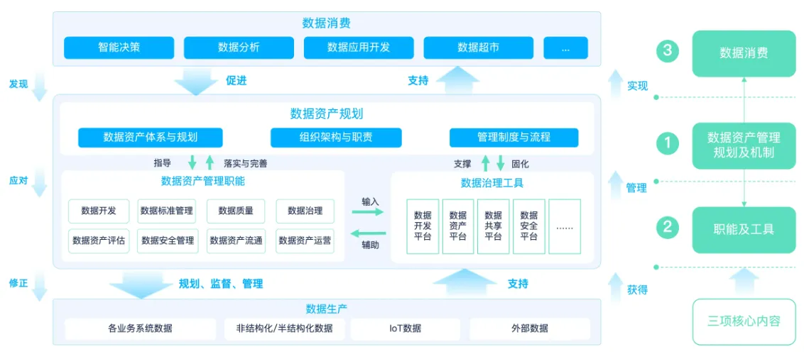 (3)组织协同效率待优化:数据、业务、财务、法务部门的目标差异可能导致协作壁垒,需建立跨部门工作机制,明确权责边界,通过数据资产运营平台提升协同效率。