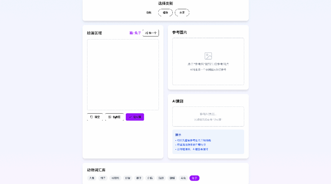 可以跟小朋友玩“人类绘画 AI 猜画”的游戏培养绘画兴趣。