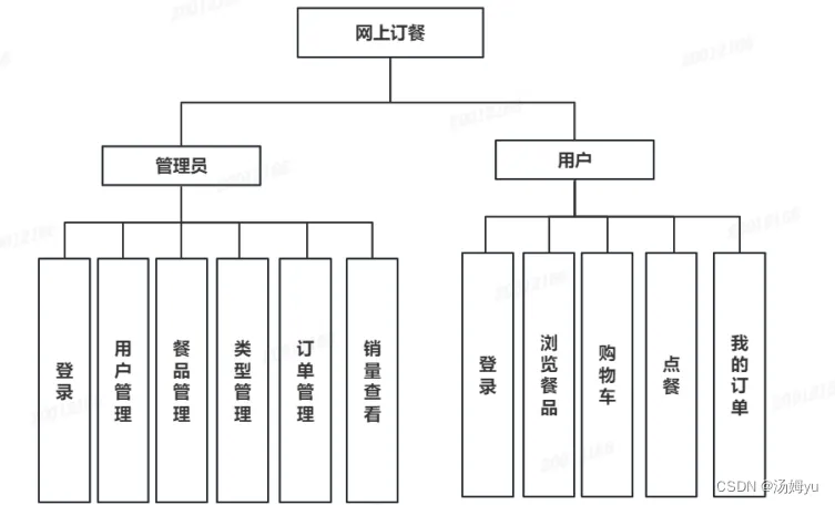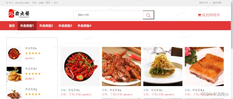 本系统主要包含餐品管理、订单管理、用户管理管理以及购买,购物车,评价管理这几个方面的设计,将重点研究以下几个方面: