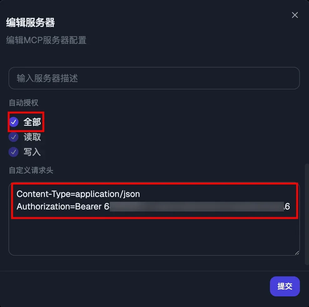 - 自定义请求头:因为默认有 Token,所以需要配置 Authorization Header。同样在服务测试页签可以找到 Token。