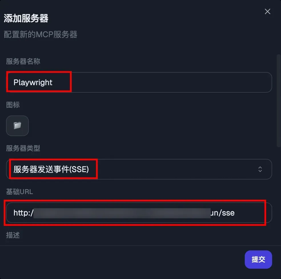 - 服务器类型:选择服务器发送事件(SSE)。