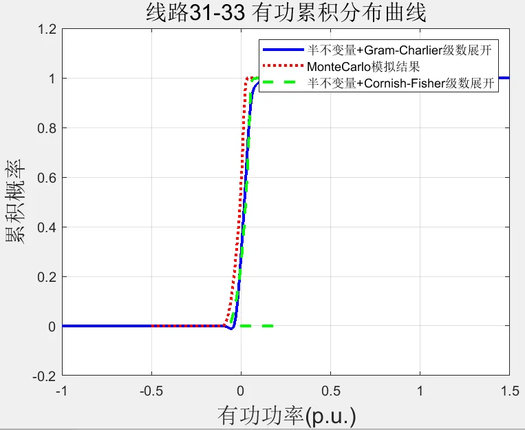 - 输入变量(负荷、风电等)的半不变量计算→基于灵敏度矩阵传递至系统状态变量→级数展开生成PDF和累积分布函数(CDF)。