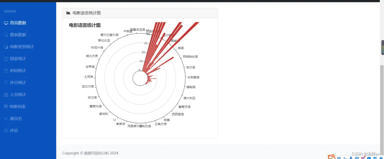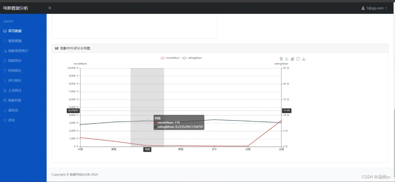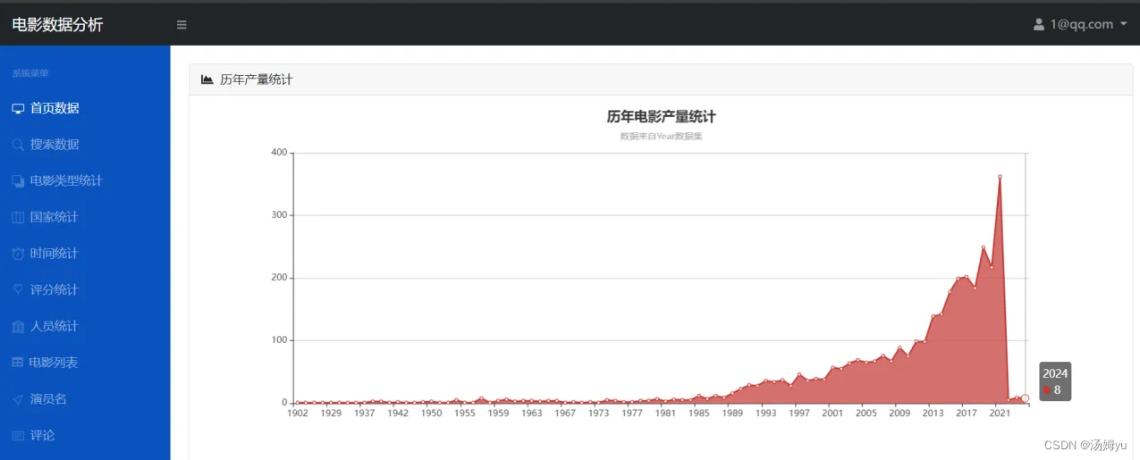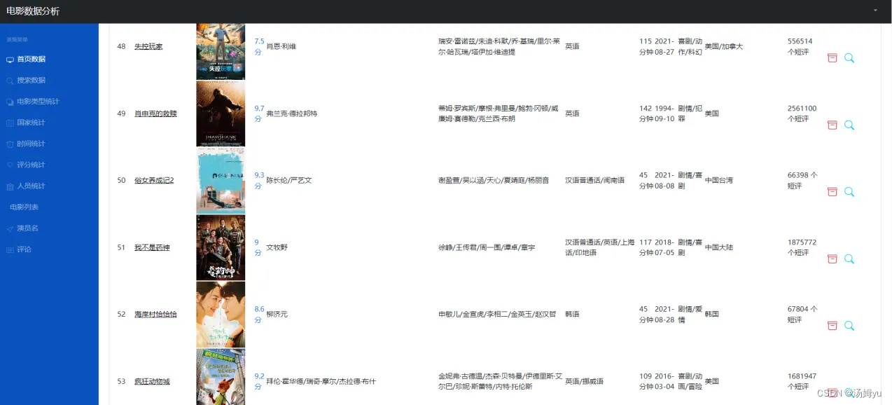 电影分析与可视化平台的背景源于对现代电影行业日益增长的数据分析需求和对信息可视化的追求。随着电影产业的全球化发展和数字技术的飞速进步,海量的电影相关数据被创造出来,包括但不限于票房收益、观众评分、社交媒体讨论、观众人群分析、电影内容分析等。这些数据深藏着对电影制作人[1]、分发者、批评家乃至观众本身极有价值的洞察和信息。因此,一个能够高效收集、处理、分析这些数据,并将其通过易于理解的可视化方式呈现的系统,对于挖掘电影行业趋势、影响力评估以及市场营销策略制定等方面具有重大意义,电影分析与可视化平台通过先进的数据挖掘和分析技术,可以揭示电影在不同区域和不同人群中的受欢迎程度,分析电影的社会文化影响力,预测市场趋势等。它能够将复杂的数据分析转化为图形、图表、地图和时间线等形式,不仅为专业人士提供决策支持,也为普通观众提供一个互动和教育的平台,帮助他们更深入地了解电影背后的故事和行业动态,这个平台的构建依赖于多种技术,包括大数据处理技术、人工智能(如自然语言处理和机器学习)、Web开发技术等。它涉及的功能可能包括自动化收集电影相关数据、处理和存储大规模数据集、执行复杂的数据分析任务、开发直观的用户界面等。此外,对数据的分析和可视化展示不仅基于传统的统计方法,还可能融入了最新的AI分析技术,使得平台能够提供更加深入和多维度的分析结果,随着5G、云计算等技术的发展,电影分析与可视化平台的数据处理能力和实时性将大幅提升[2],使其能够提供更加丰富和即时的分析结果。对于电影行业的各方利益相关者而言,这样的平台不仅有助于深化对电影市场的理解,还能够发现新的商业机会和创造性地利用电影数据。对于广大观众而言,它提供了一种新颖的方式来探索电影世界,增加了观影体验的丰富性和深度。总之,电影分析与可视化平台是电影数字化转型中的重要工具,为电影行业带来了前所未有的机遇和挑战。