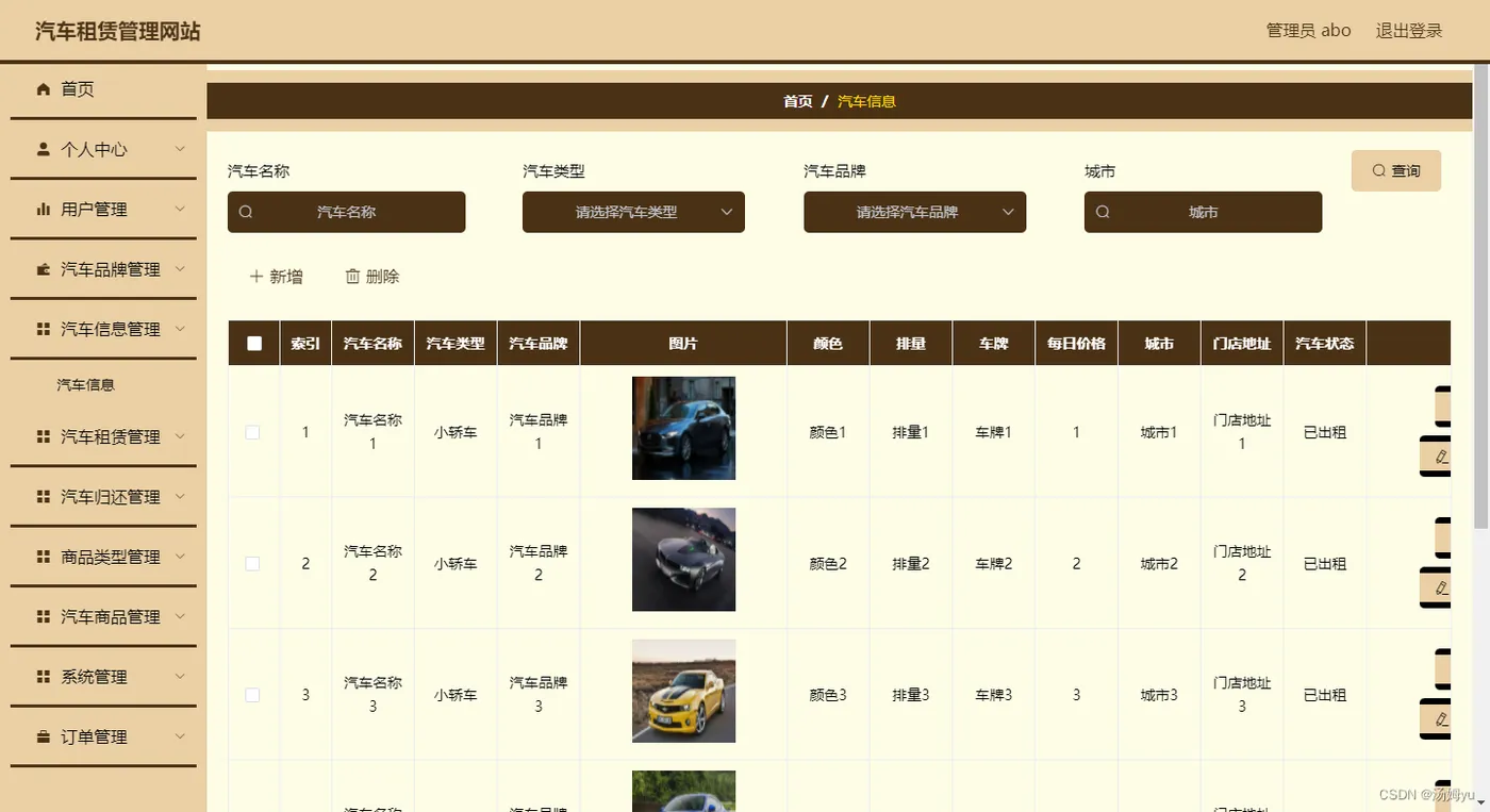 社会发展日新月异,用计算机应用实现数据管理功能已经算是很完善的了,但是随着移动互联网的到来,处理信息不再受制于地理位置的限制,处理信息及时高效,备受人们的喜爱。本次开发一套汽车租赁管理网站有管理员和用户两个角色。管理员功能有个人中心,用户管理,汽车品牌管理,汽车信息管理,汽车租赁管理,汽车归还管理,商品类型管理,汽车商品管理,系统管理,订单管理。用户可以注册登录,查看汽车信息,租赁汽车,购买汽车商品,把商品加入到购物车购买,并且生成订单。汽车租赁管理网站服务端用python开发,用django框架开发的网站后台,数据库用到了MySQL数据库作为数据的存储。这样就让用户用着方便快捷,都通过同一个后台进行业务处理,而后台又可以根据并发量做好部署,用硬件和软件进行协作,满足于数据的交互式处理,让用户的数据存储更安全,得到数据更方便。