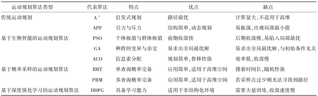 | 势场法 | APF | 实时避障 | 局部极小值问题 |