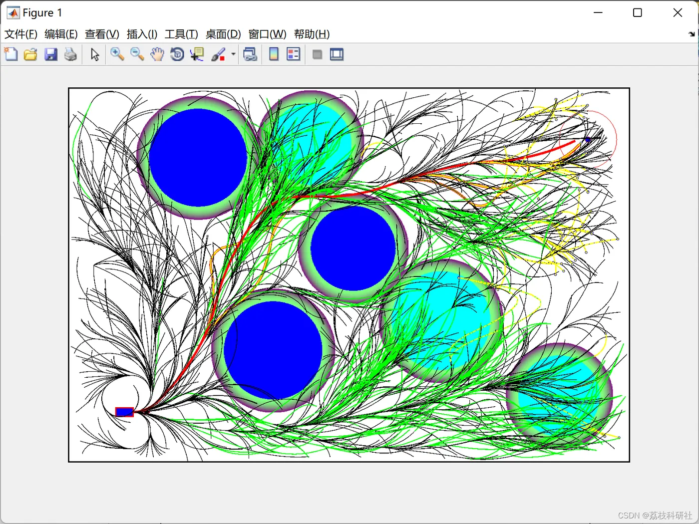 - A*全局规划后,APF局部优化路径(规避随机障碍)。